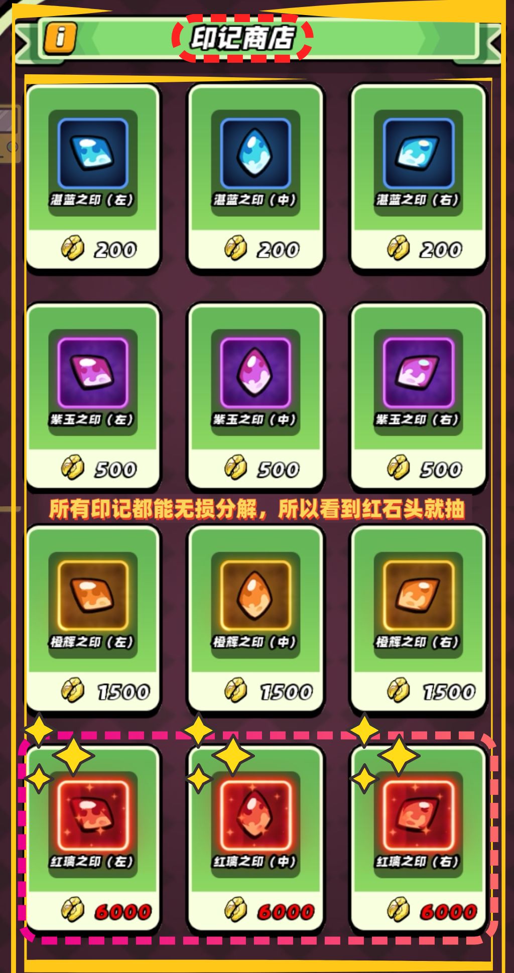 - 购买高级印记:使用古印残片在遗迹商店中购买各种高级远古印记。