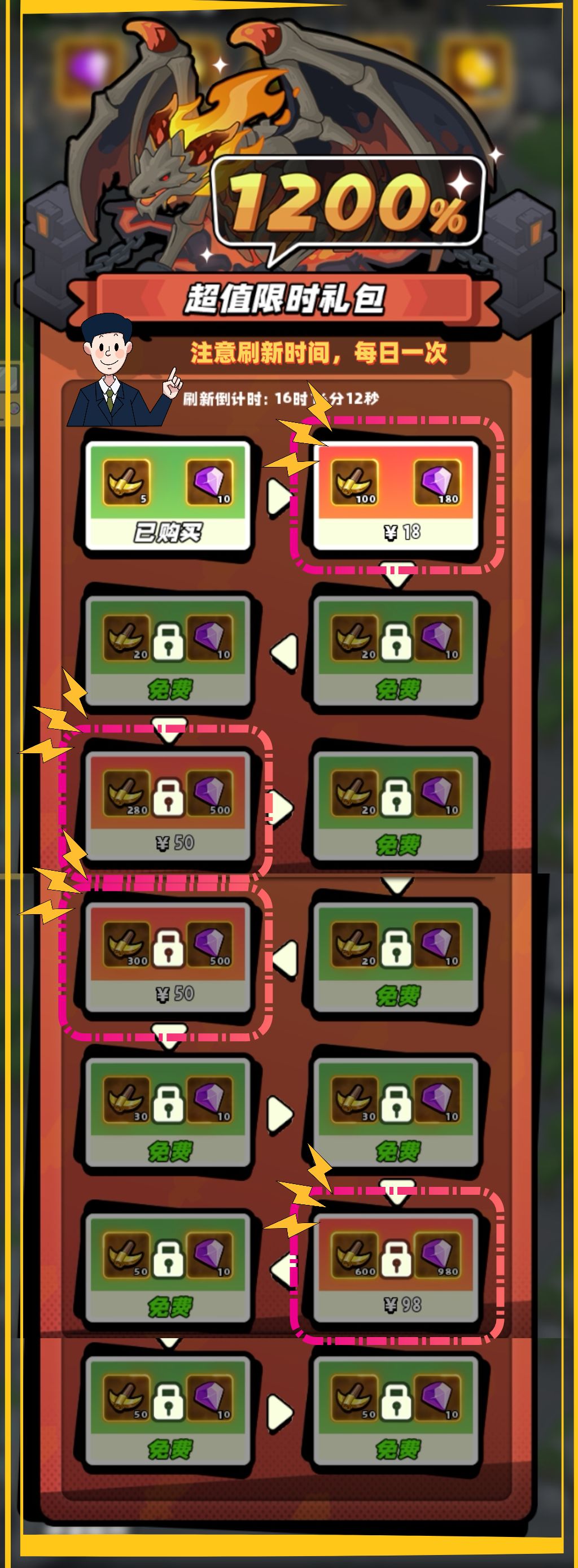 - 领取奖励:每次达到伤害要求后,及时领取奖励并解锁下一难度。