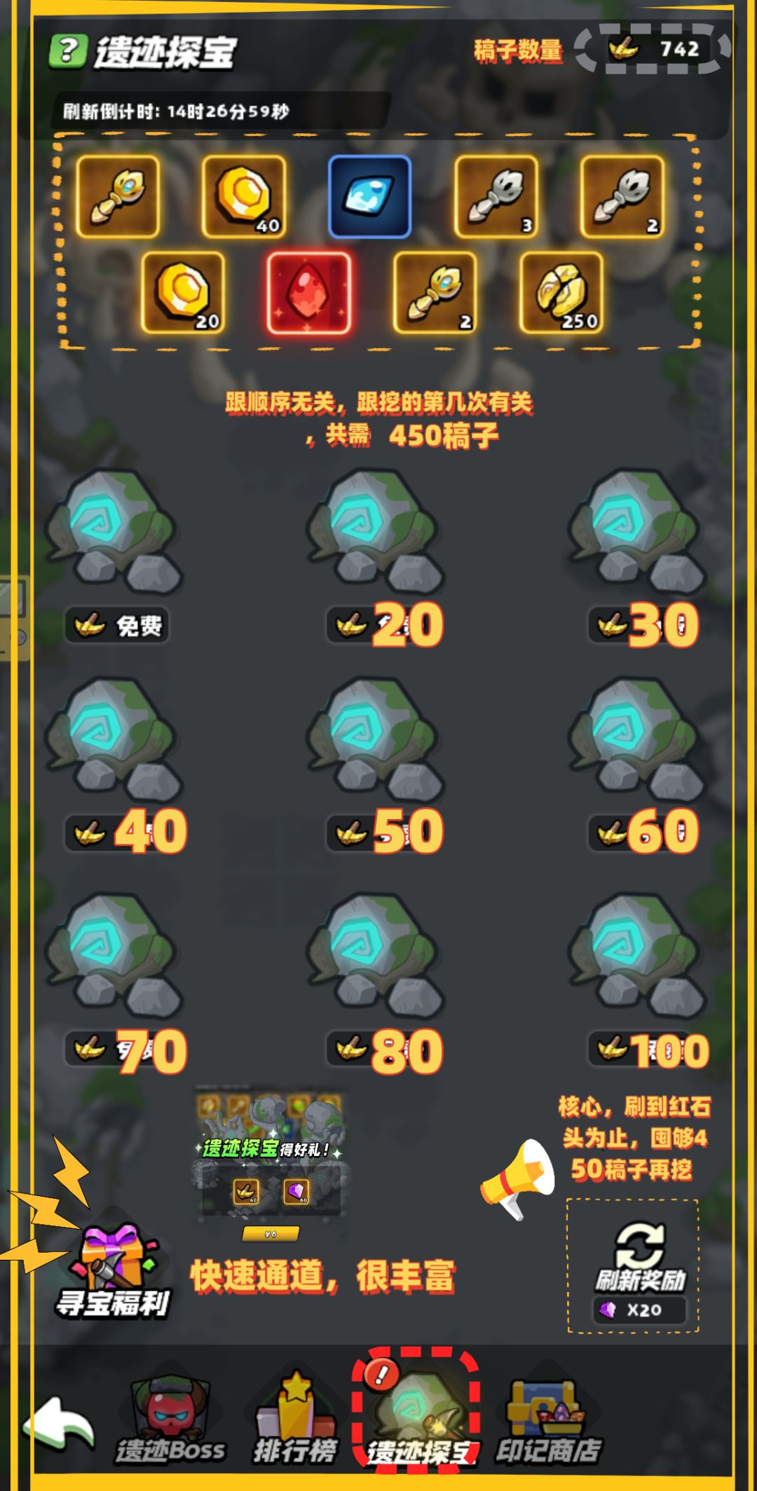 - 合理使用镐:每次挖掘宝藏需要消耗遗迹镐,合理规划使用以最大化收益。