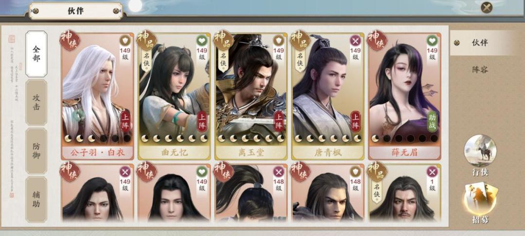 伙伴可以升级至149级,神侠提升1级需要20个侠影研习录四,金色伙伴提升1级需要8个侠影研习录四,当前6个神侠+3个金色伙伴共需144个侠影研习录四。
