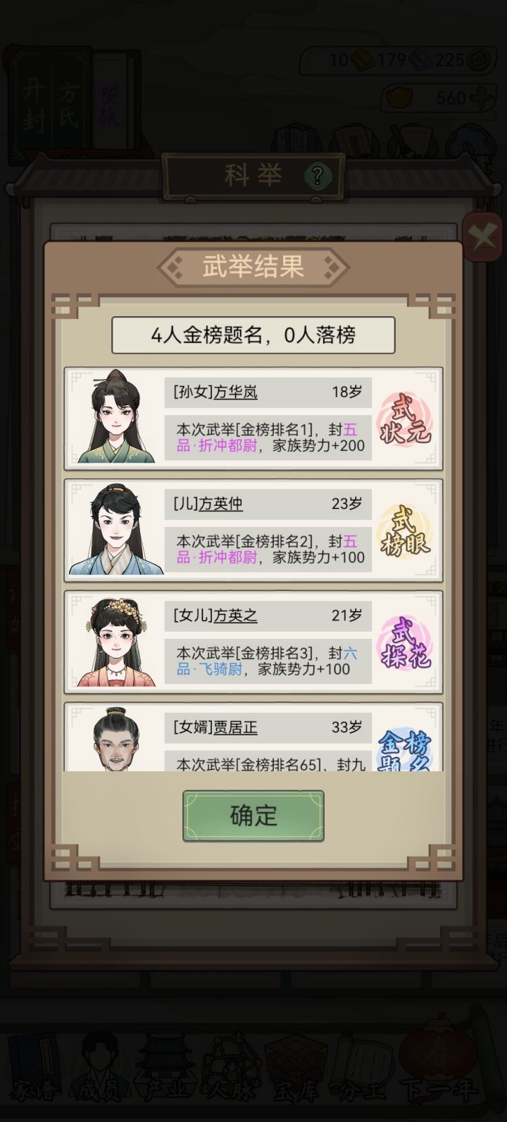 科举参加武举,武艺数值更好提升,而且还有加武艺的藏品。