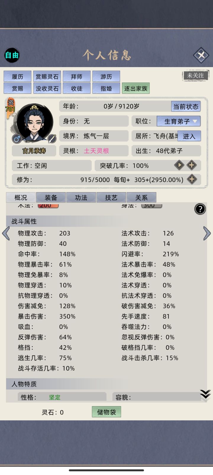 9主角体4名人天赋2配角体,看下出生面板吧