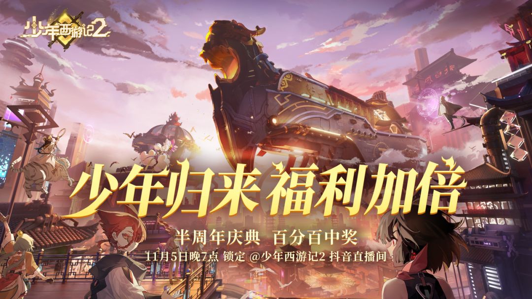 《少年西游记2》半周年版本更新,长安盛世庆典已开启!11月5日晚7点-9点,直播福利再加码,特邀coser携手项目组策划&运营在“少年西游记2”抖音官方直播间在线直播、有问必答!