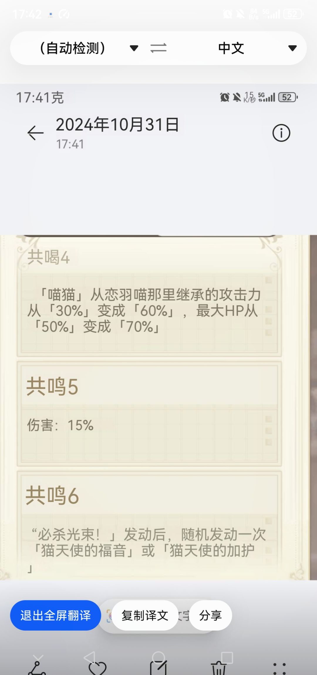如图,恋羽的技能、天赋、旋律、共鸣,还有日服的终音使用情况。