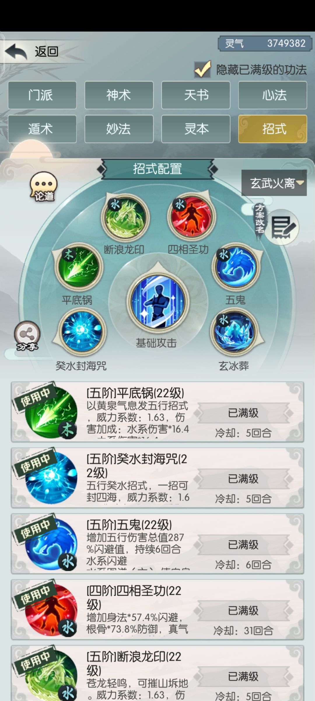 本体技能-癸水封海咒-黄泉诀-断浪龙印-四相圣功-五鬼迷踪诀-玄冰葬