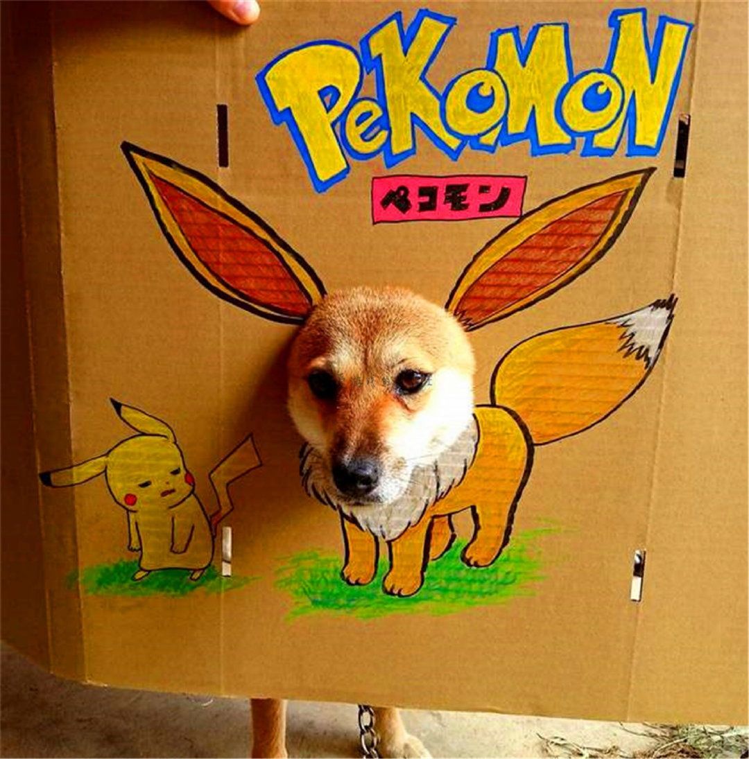 没有一条规则限制参与Cosplay的只能是人类,ACG作品里充斥着各种奇奇怪怪的生物,因此汪星人也有了用武之地。博士之前就曾分享一位狗狗Coser的作品,主人“takase_farm”利用了它的“壁犬”属性,使用一块简单的纸板加上自己卓越的画功,就在现实中还原了《宝可梦》游戏系列中的人气精灵伊布。