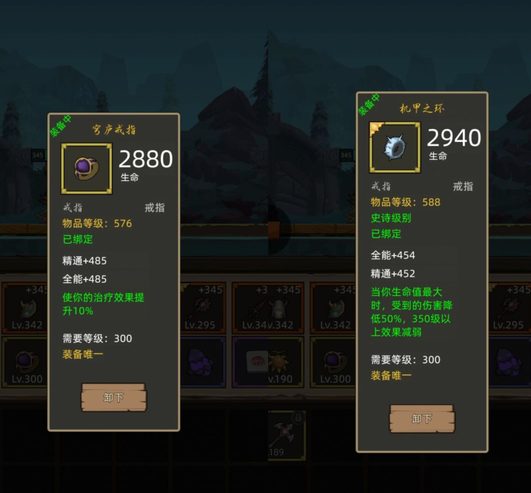 装备选择:亡者复生套,巨神套,4件或者2+2或者全能低的情况下,带不朽衣服减伤20的也行,项链铁星,机甲戒指是必须的,50的减伤太变态,另一个我带的治疗,个人觉得后期防御高了,治疗戒指都能换攻击的,但是我懒,我双485全能精通的戒指为啥要换!