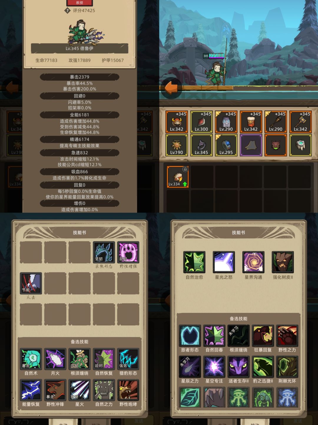 被动选择:树皮15的减伤必须,其他看自己个人调整,扛不住就带自然自愈,狂暴回复,或者自然回春,能抗住就换暴力输出的,也是看自己个人。
