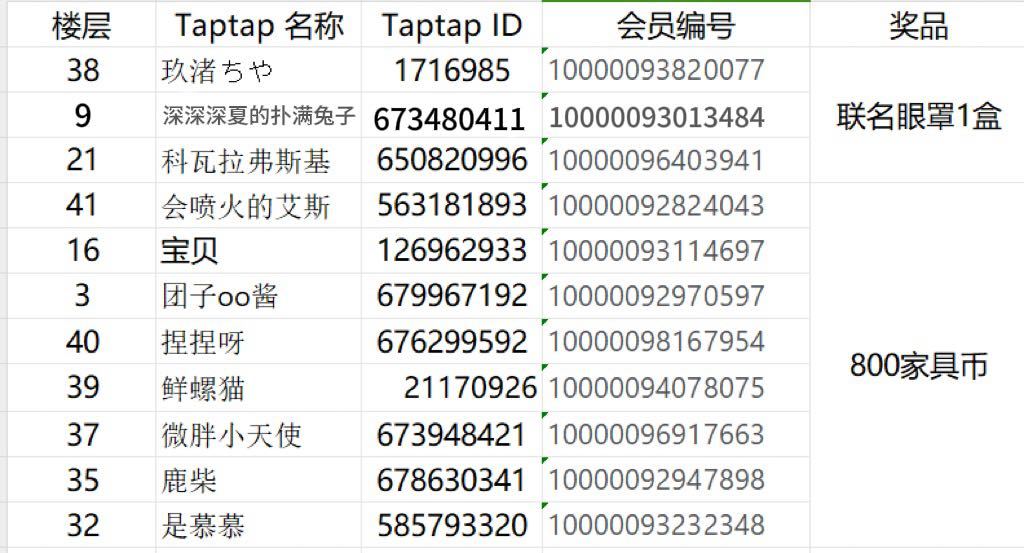 我们在满足活动要求的回复楼层中选取了11名玩家,获得奖励