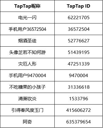 *开奖公示期为2024年12月6日-2024年12月13日,此期间若对结果有异议,可通过TapTap私信或官方群向管理员反馈。