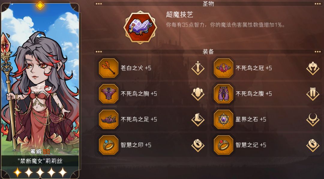 补充输出:洛克玛帝国-火焰术士,使用超高伤害的单体技能打boss,经常可以一发巨火球解决战斗。推荐使用金色的,用紫色蓝色也行,主力还是皇家剑圣。
