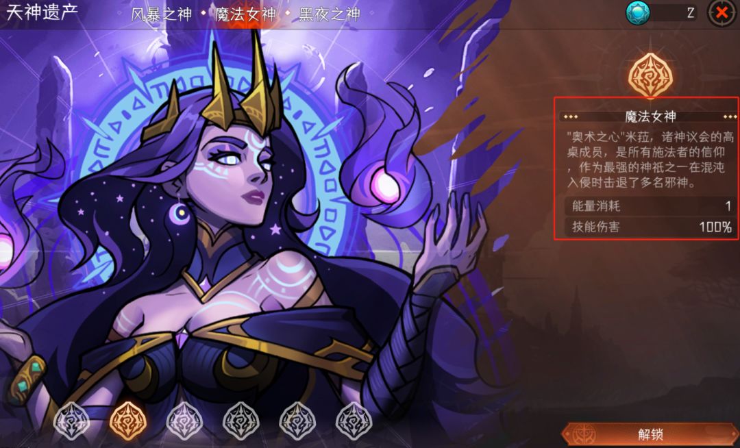天神不需要刻意去凹,有什么选什么就行,【黑夜女神】【命运之神】【魔法之神】【雷电之神】都是不错的。