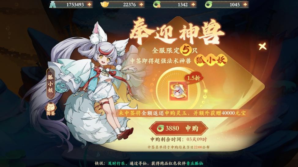 神兽申购:3880活玉 返还4w元宝