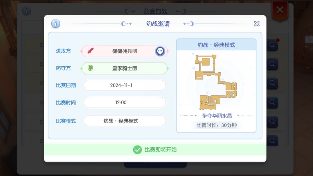 比赛开始时,双方公会成员通过【约战界面】主动加入战场。