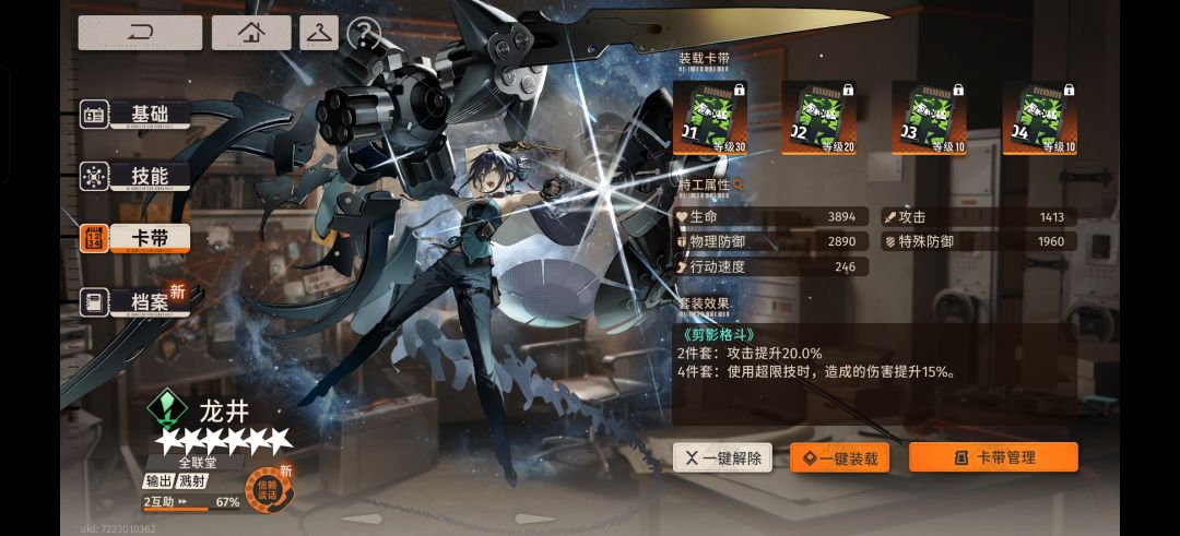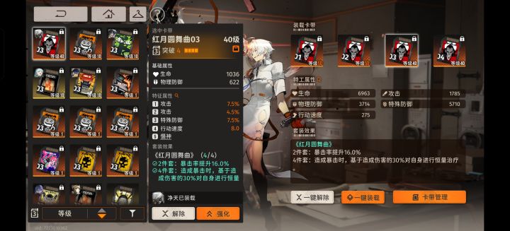 首先聊聊关于本期的周期寻回 我的阵容如图 我的两个主力 然后是卡带的搭配 其实聊到卡带 我去b站 论坛 看了很多视频和帖子 最后个人总结一下 其实都差不多吧 实战当中其实受限于门阶 自动与手操 不用太过于去照抄别人的作业 自己稍微研究一下 怎么舒服怎么来 就比如我自己 我目前的主C是净天 如图所示 连一门都没有 不过目前所有的主线 支线 包括车站还有寻回 我都是纯自动 挂在后台开个浮窗 时不时点点就行了 我给自己的定位就是收菜 养老 不追求排名 所以测试过不同的卡带组合 四红月 是最舒服的 因为如果是2+2 不管是无主 剪映 亦或者2红月 其实血量真的是个问题 我个人感觉没有必要去强行压血线 目前除了寻回凸分 其他模式的不管是群怪还是单BOSS 净天伤害完全是够的 这里可能还有个区别 就是关于资源问题 养成里面那个花砖的礼包 我个人是全都买了的 但是论坛也有不同的声音 我的看法就是仁者见仁智者见智 没有什么绝对的 如果你不太愿意投入太多金钱 又想等喜欢的角色皮肤 那么其实那些养成资源完全可以用长线的时间来弥补 如果你和我一样比较急性子 就想全部打完收菜 那那个礼包其实是不亏的 看怎么转换了 那些礼包在我看来就是加速养成 同时节约大量体力的好东西 而且还能在前期快速形成战力 打的更舒服 更安逸