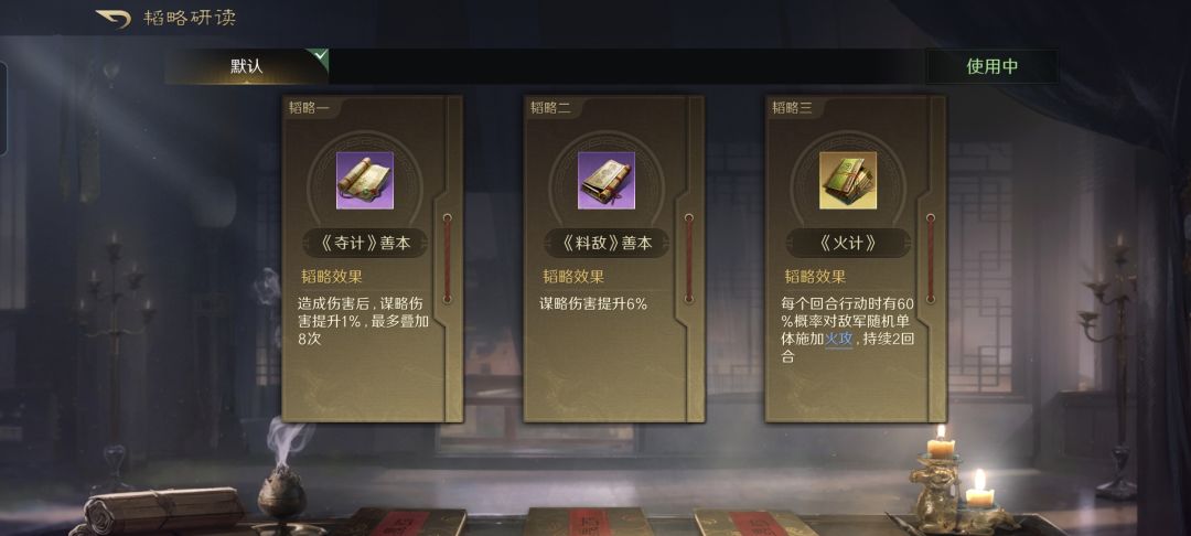 周瑜战法:临机制胜+胜敌益强+狂风大作。韬略库:夺计善本+料敌善本+火计(专属)。弩兵特性劲弩,专精点亮釜底抽薪。