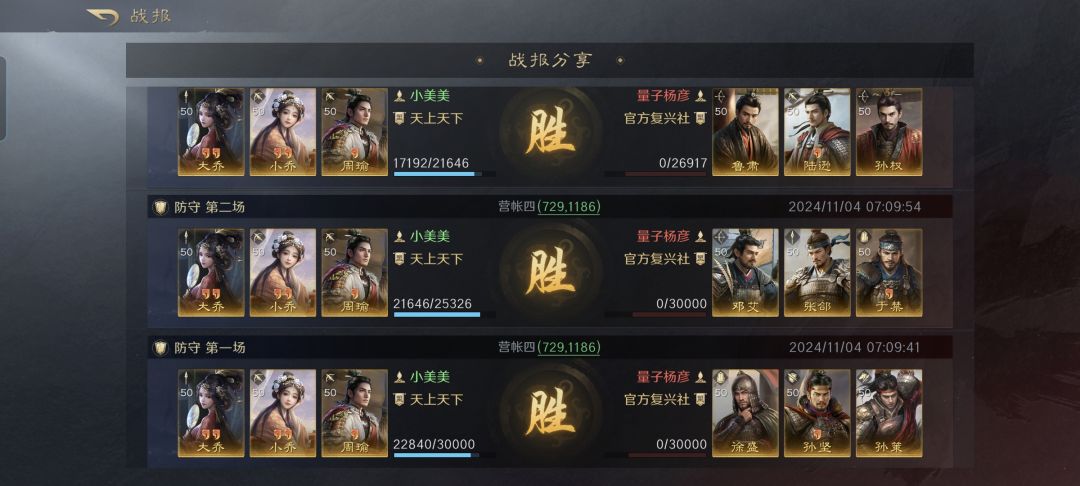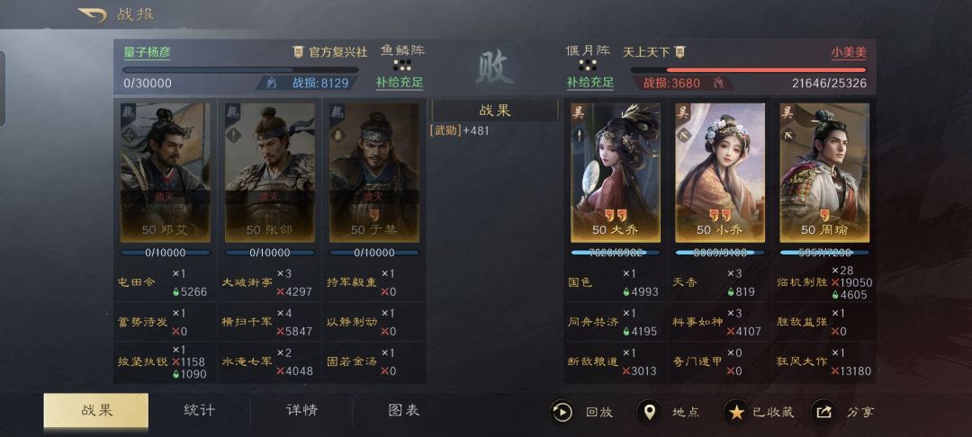 特别鸣谢游戏ID名为“小美美”的玩家朋友,给本文带来了宝贵的创作素材。小美美这个名字听上去人畜无害,不过其在游戏里的表现却相当强势,以327万的武勋暂列我所在区的武勋榜第17名。此番,他利用组成铜雀弓的大乔、小乔和周瑜摆出偃月阵,一鼓作气打穿多支主力队伍。周瑜甚至单人拿下了超过30000点的人头,比关羽猛得多,当中的奥妙值得参考。