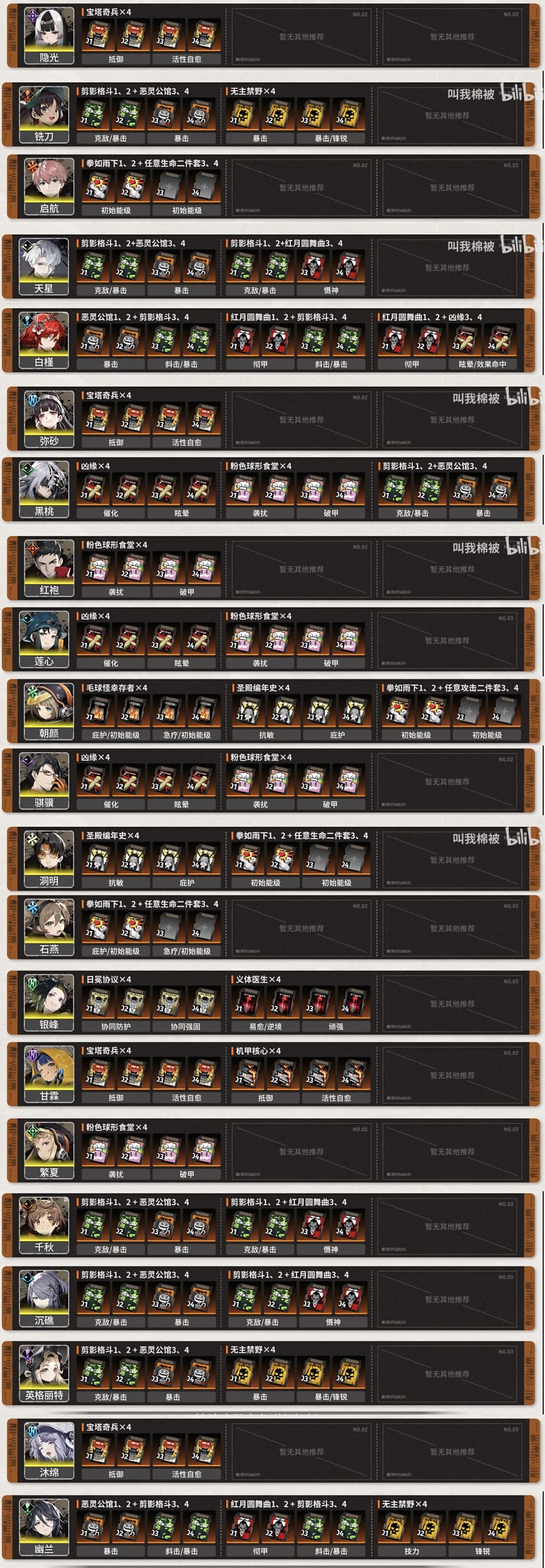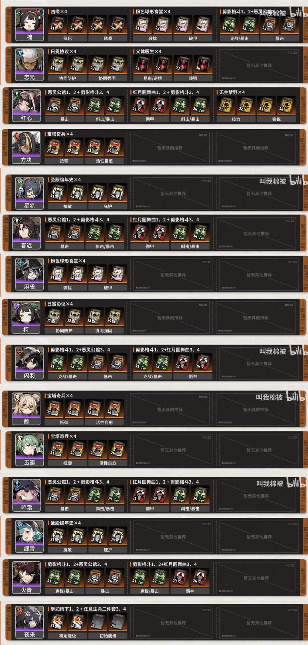 攻击%≈暴击伤害>暴击率;辅助推荐初始能级