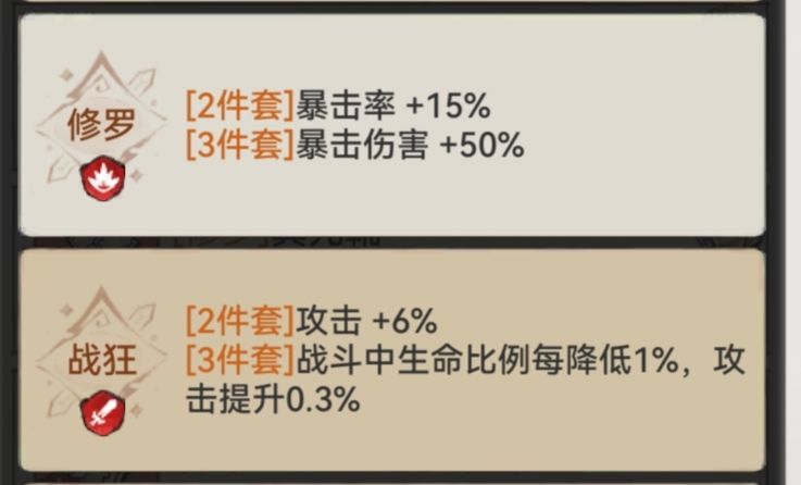 总的来说,修罗套和战狂套都比较适合卫寒。如果追求更高的暴击输出,可以选择修罗套;如果想要在战斗中随着生命值的降低不断提升攻击力,可以选择战狂套。