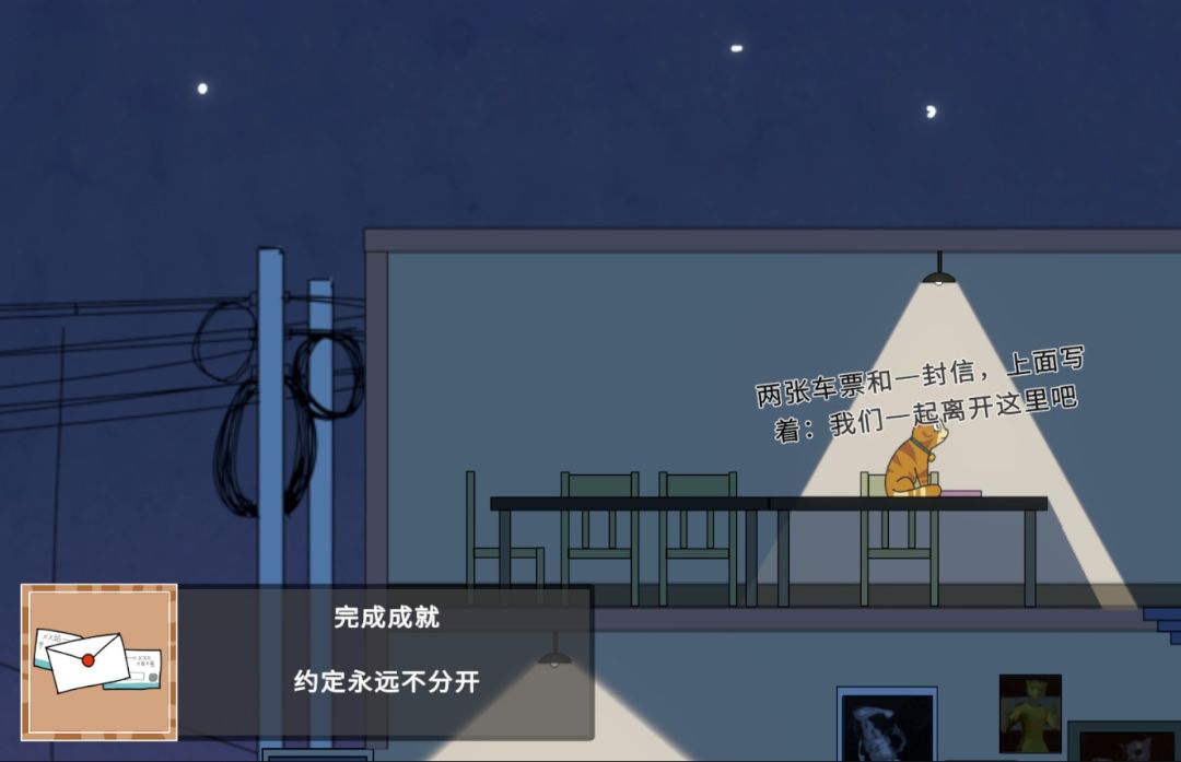 此屋子的三楼桌子上,放着一封信和两张离开的车票,这是完成好结局的必要成就之一,它预示着当年主角下定决心带其妻子离开某地的邀请和决心,其背后的过程困难重重十分艰辛,都表现在第二区域的设计之中。在结局的对话中,在主角知晓妻子离世后回到家中时,会说到: “明明那么多苦难,我们都一起走过来了”,这里的对话也对应第二区域的场景含义。
