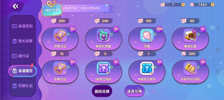 请注意平衡樱花和花瓣的使用,樱花礼包会送很多投票券,因此我在换家具套的时候有很多花瓣作为副产品,最后一天准备在1,2,4,8中选一套换