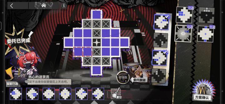 烟花筹委会这个小游戏就是利用右边的拼图碎片填充除X区之外的整个烟花的爆炸区域