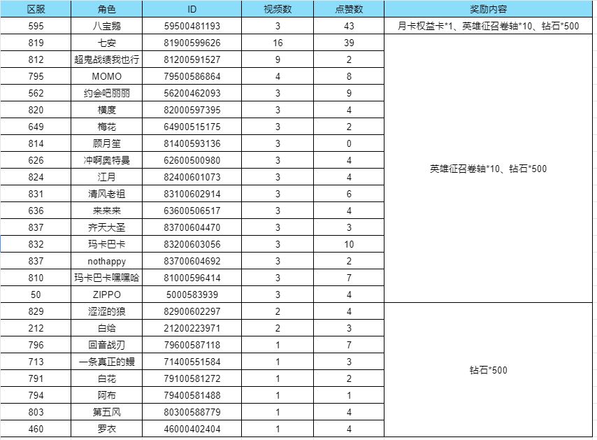 感谢各位玩家的支持,奖励将在5个工作日内通过邮件发放至对应角色中,请您注意查收。如有遗漏,请在本贴回复!
