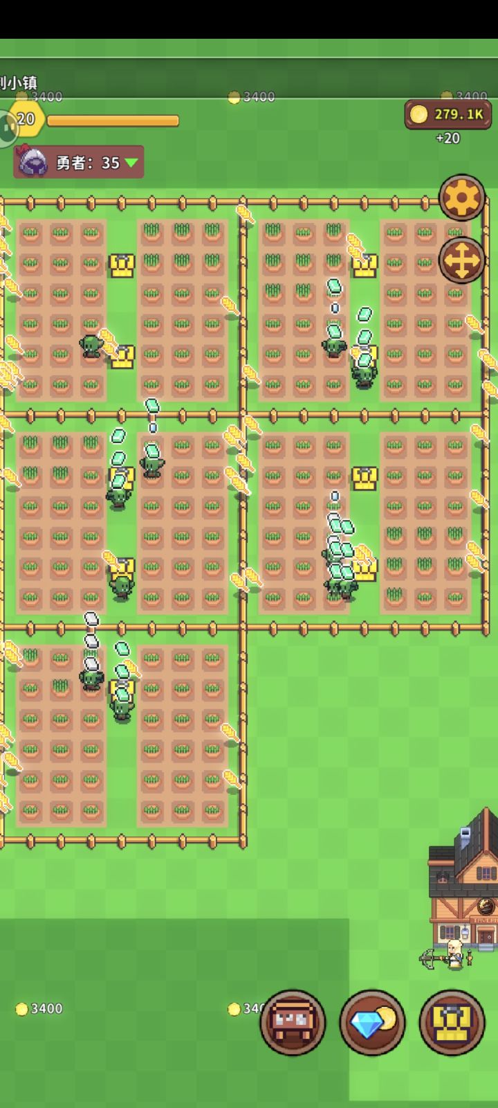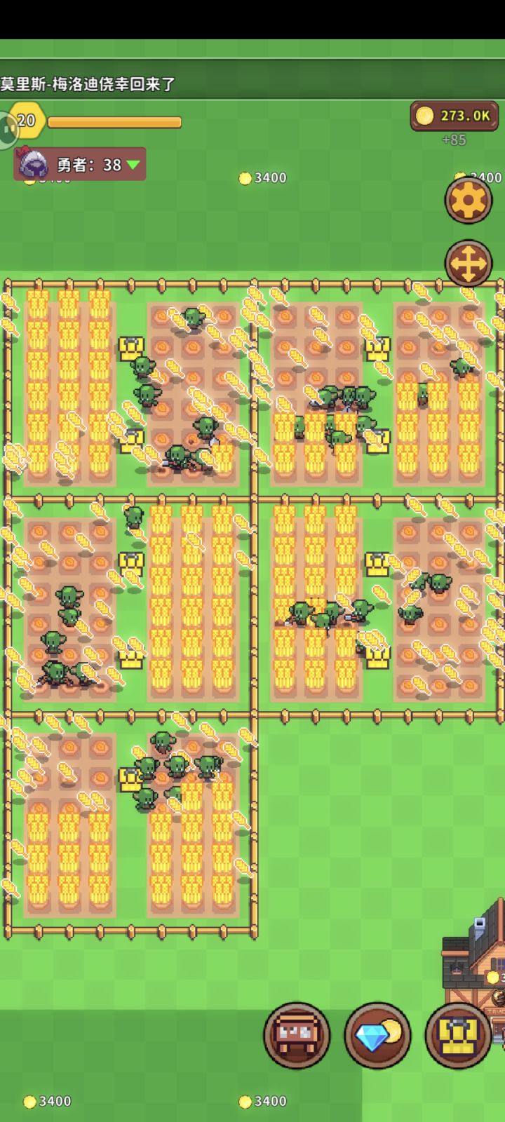 你召唤的哥布林如果没有物质采集就会离家出走然后进行超时空采矿。哥布林超时空采矿后会在图2箱子那存东西围好的地方弄个缺口把图2处的箱子移进去他们会自己进去圈里,利用这点可以实现5个地每个8哥布林完美开,可以1酒馆2个药店,不会缺小麦和魔石,极端的直接不种小麦直接采矿估计可以同时开4个药店