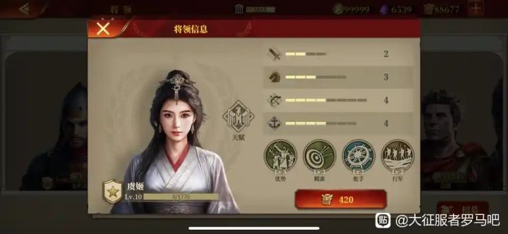 金将,荣耀之路上限五级,购入价格420,算上升到将军一共665。专兵是弩兵