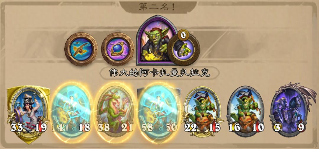 四本我并不不推荐大家停留太久,能升五最好在五本停留,可以瑞文、擎旗空中海盗、巡游舵手、执念诗心龙一起找,这些构件都是缺一不可的,在四本停留太长,很有可能因为缺瑞文或者巡游舵手的加攻击力,老八出局。期间遇到搞怪裤需要提前抓两张,给战团下嘲讽,不得不说即使没了跳蛙,如今的瑞文也是真难抢啊。这把第二名,就是因为隔壁同行抓了7张瑞文,而我只有一张,并且少了一张搞怪裤,后手战团先被打掉,浪费了攻击频率。