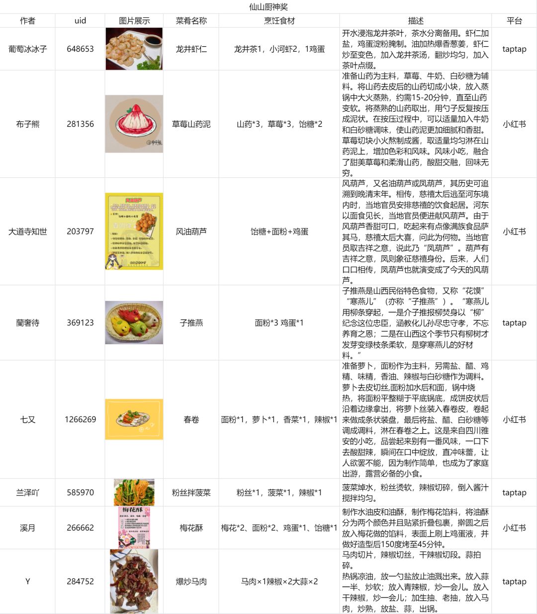 3、仙山小农策划、文案及运营团队,将围绕作品实际应用性、开发可行性、创意性、地方特色性、人气热度等综合方面考量,对参与企划的作品进行评估,从符合上述条件的作品中评选出3~5个食谱实装到游戏中