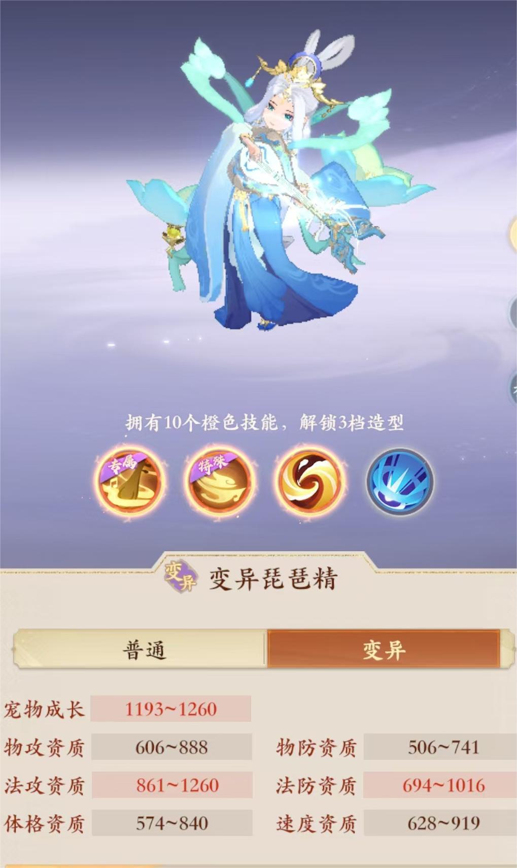 这个这个真是美翻了,也太好看了吧,这培养好了染好色,天天让小琵琶跟着我,如果你是一个奶妈,你又没有神兽狐小妖,那你一定要做一只琵琶精,斗转星移搭配终极庇护,暴击伤害直接减少70%啊!有增伤有坦度,法伤法防速度资质都很不错,灵饰推荐雷霆万钧+如影随形,移花接木,虎背熊腰 PVE,PVP都能上场,非常的推荐奶妈职业培养一只!