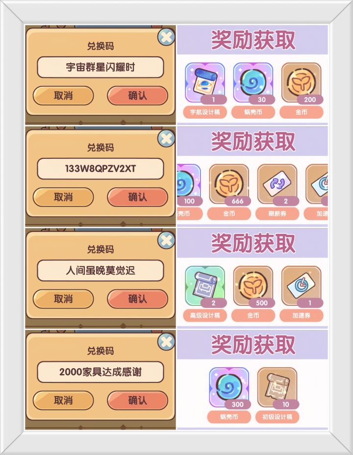 兑换物品:高级设计稿*10、蜗壳币*30、金币*200