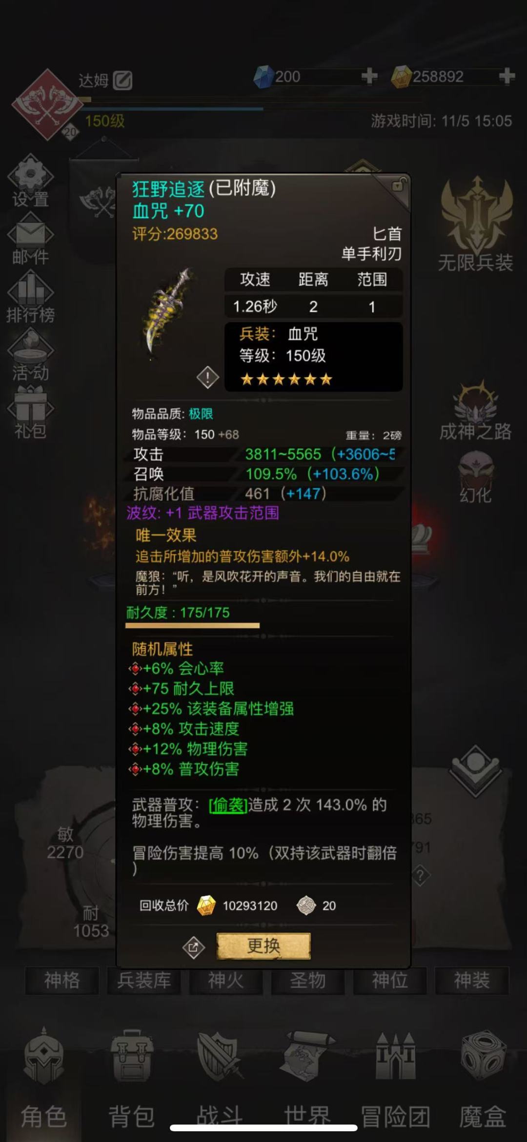 5、身份的问题,我目前是不带暴走暴击没有满用的是孤儿,如果暴击满了建议猎手之后或者贵族,整体属性收益更高一些。