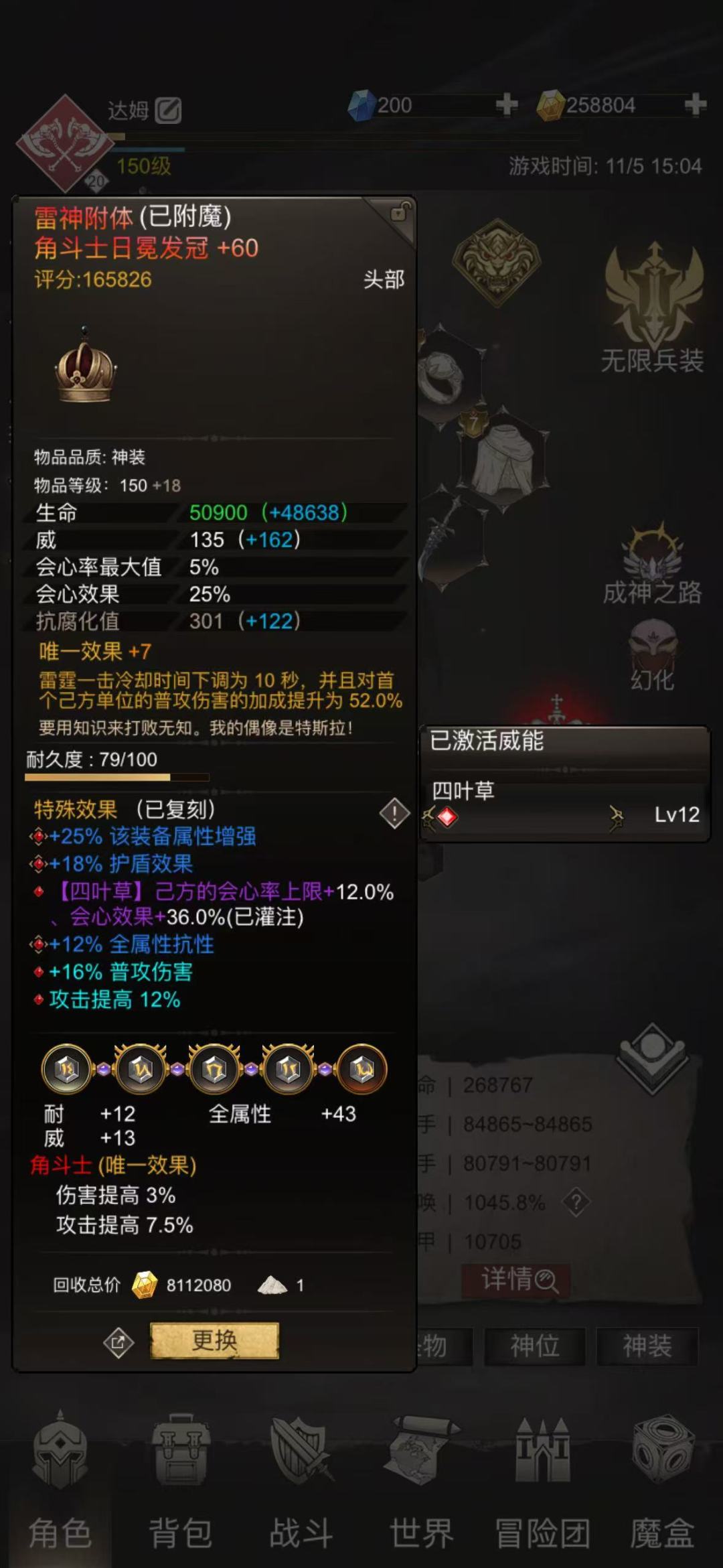 散件:雷神附体+全新战器+狂暴(武器出啥用啥,伤害增幅、普攻、攻击类均可)