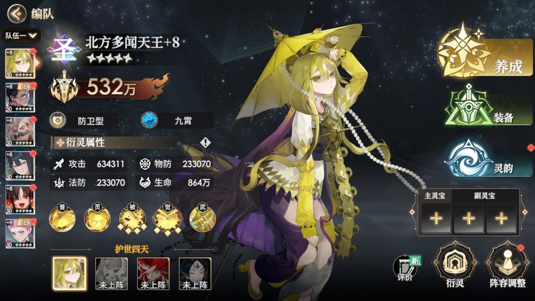 灵宝系统开启后,在【编队】界面中将出现灵宝装备栏。每位衍灵的灵宝都由自身携带,而非跟随格子位置。衍灵在达到【圣】1星后,会开启主灵宝位,在【圣】3星、【圣】5星分别开启第一、第二副灵宝位。