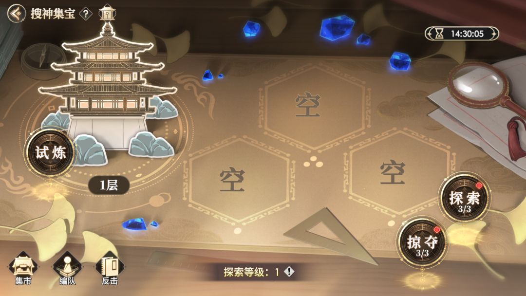 试练塔为搜神集宝玩法中的挑战关卡,玩家需要使用3队进行作战。每成功通关20层试练塔可以提升1级探索等级。探索等级决定着搜神集宝中探索和掠夺的山河宝库的等级,等级越高相应的奖励越丰厚