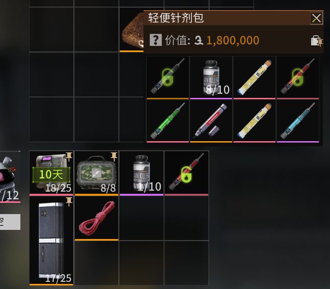 针剂推荐携带自救针、快速回复针剂,剩下则有啥带啥。自救针的作用是在倒地后,爬到女boss巡逻外的墙角后重新反击,快速回复针剂用于对拼时增加容错,可带可不带。红绳推荐携带一个,兴致来了捆绑一下女boss也不错。