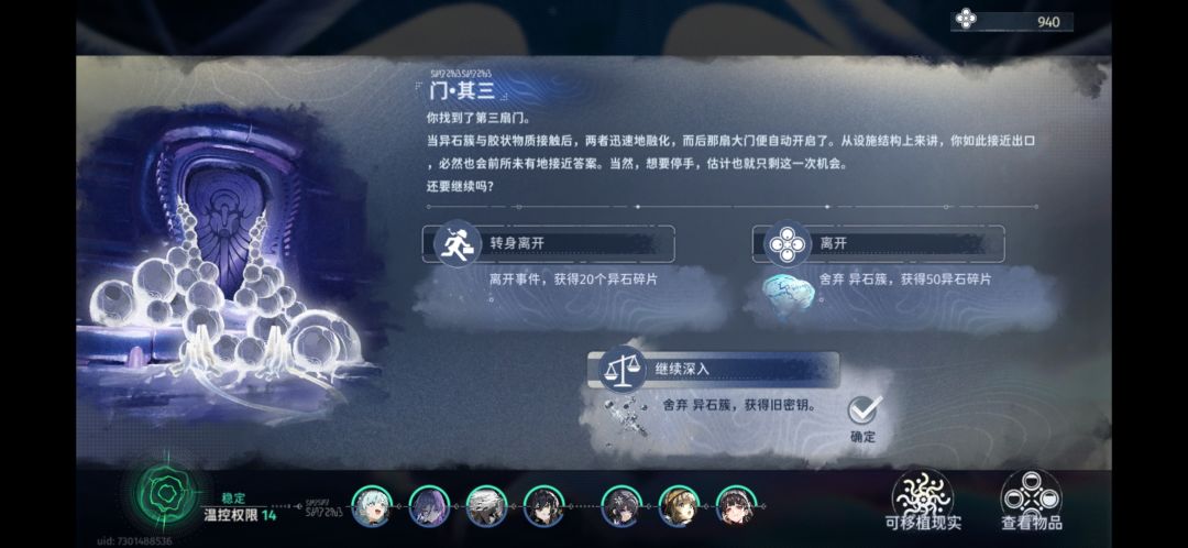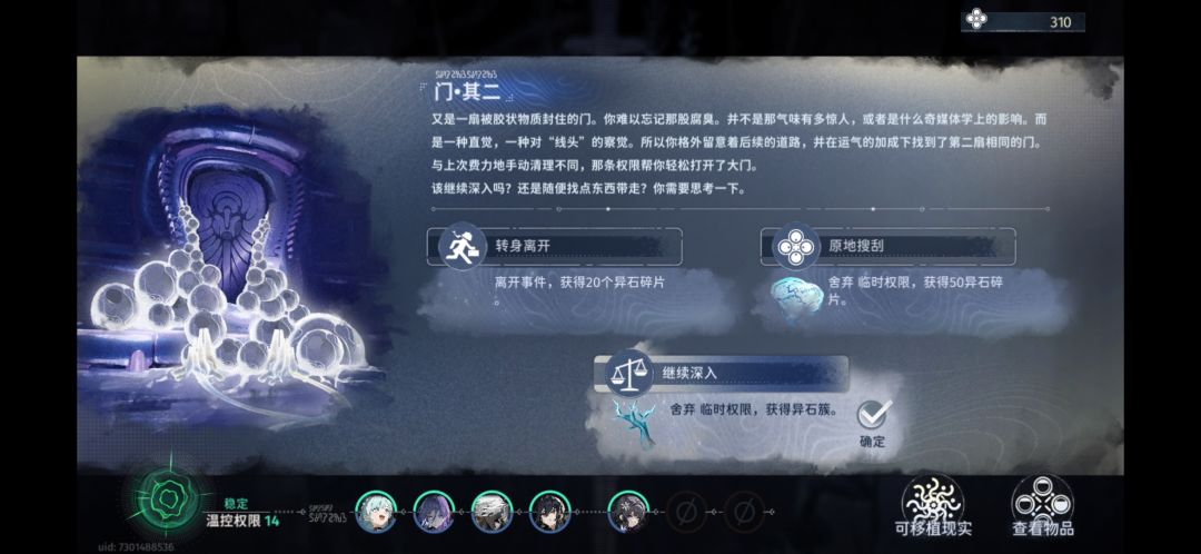 进蓝色站台后(上次我以为需要难度五,后面验证任何难度只是门随机出现)随机出现门剧情,就是节点上有个播放器图标的!最后按图进门拿东西换东西,换到门三剧情,就会出现地面暗门,锤完了事,还有说一点正常结局跟微融结局不能同时达成,要么微融要么正常!