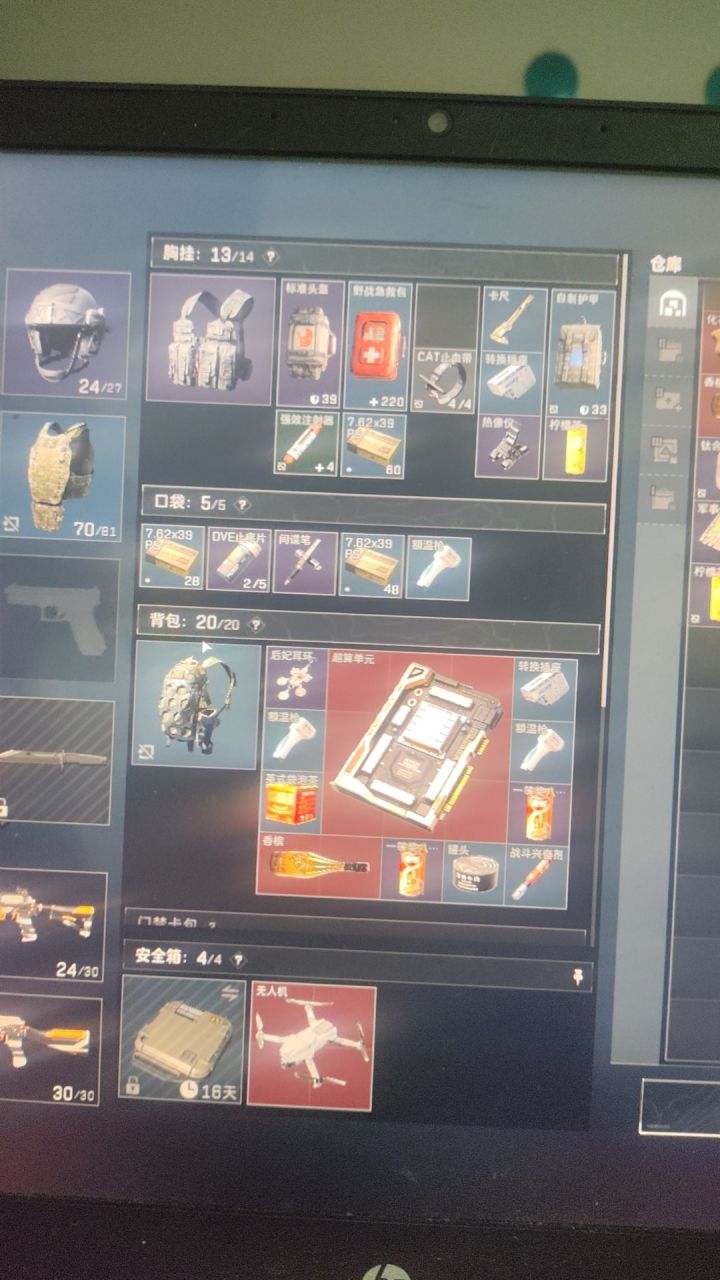 一直玩下来,如果说有啥经验的话,就是感觉每天前两把会匹到跑刀的,自杀的,然后要是一直求稳摸垃圾不死,队友和对手装备会越来越好,直到匹配到6套。然后就是感觉游戏确实有大红局,金和红是两个刷新机制,红要么一局出几个,要么一个不出,比如图中这样的,雷达站武器箱里出碳板,那一把雷达站直升机平台上航空箱里出了个显卡给队友了。