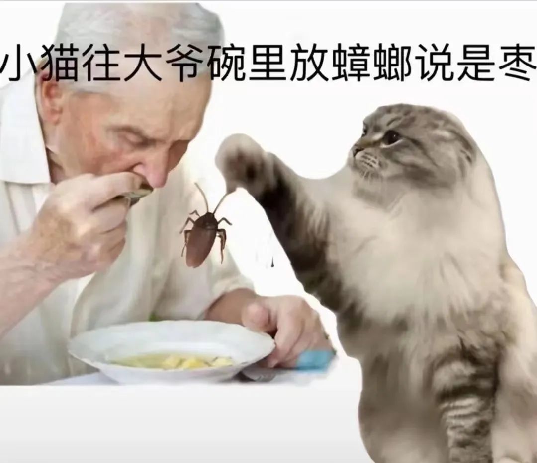 小猫抓了蟑螂放在老头碗里说是枣。