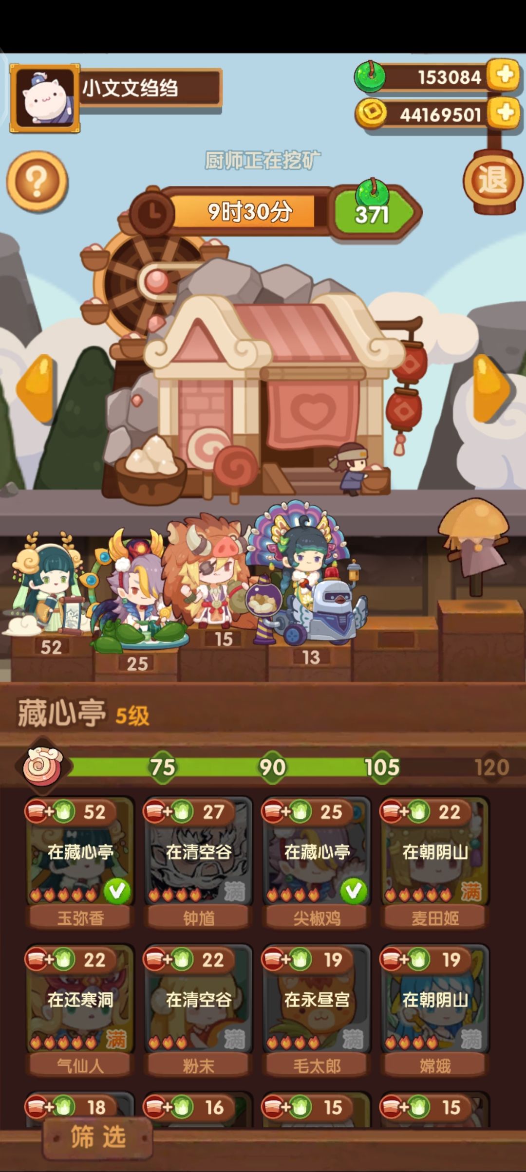 5.藏心亭105,前两个厨师可以,后面两个有替换空间,也是缺三火采集玉