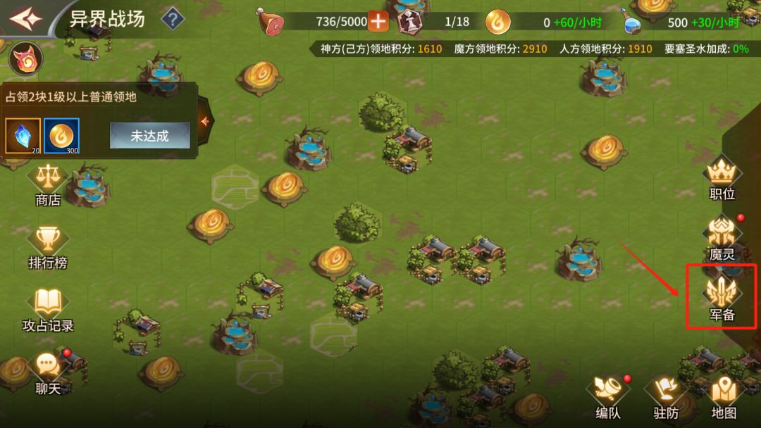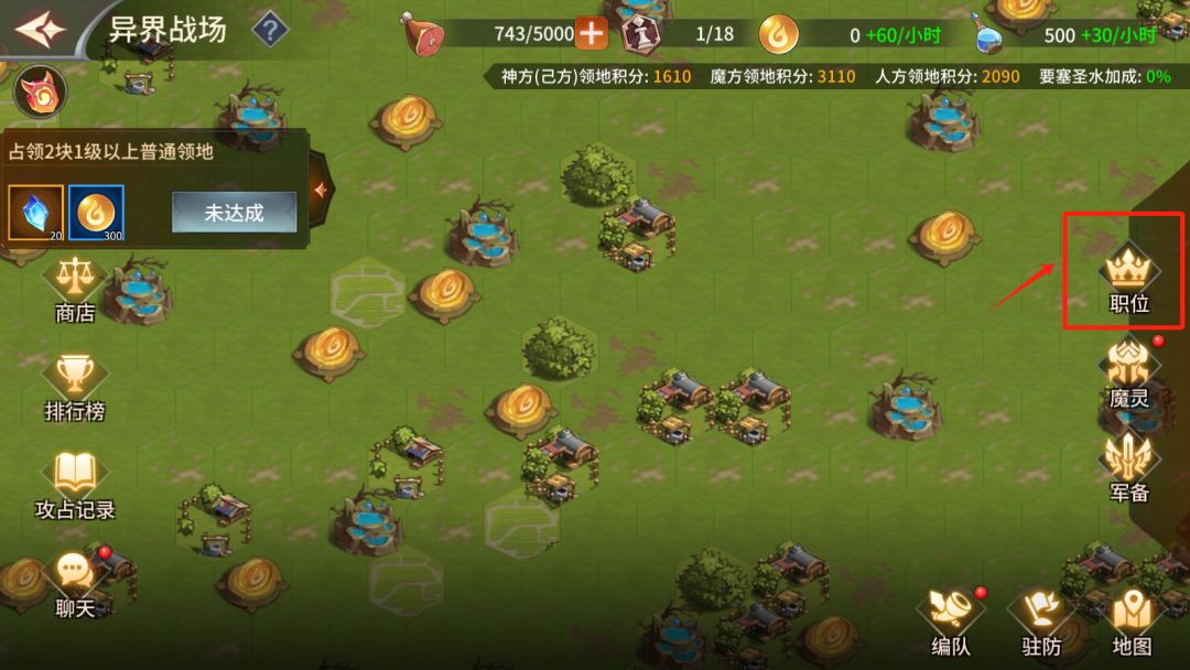小技巧:若当前可占领领地数量无法达到职位升级所需的占领数量,可清除已占领领地重新占领即可。