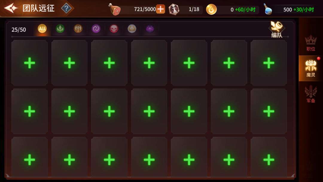 (默认可配置25个魔灵,后续通过提升职位后,可增加配置魔灵的数量上限,总计可配置50个魔灵)。