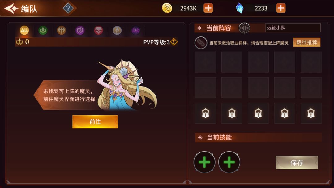 进入团队远征后需优先点击“魔灵”按钮,进行团队远征魔灵配置操作,否则无法进行后续的任何操作