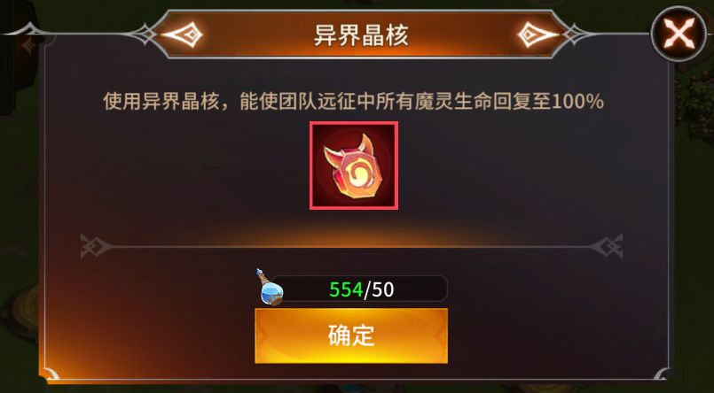 异界晶核:消耗圣水购买的一种功能,购买后直接将异界的全体魔灵生命回复至100%。