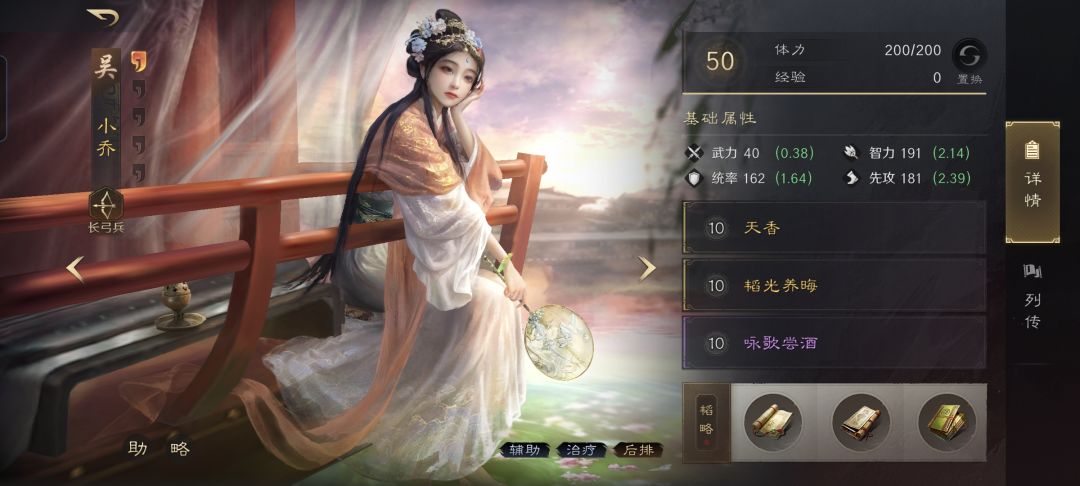 小乔战法:天香+韬光养晦+咏歌尝酒。
