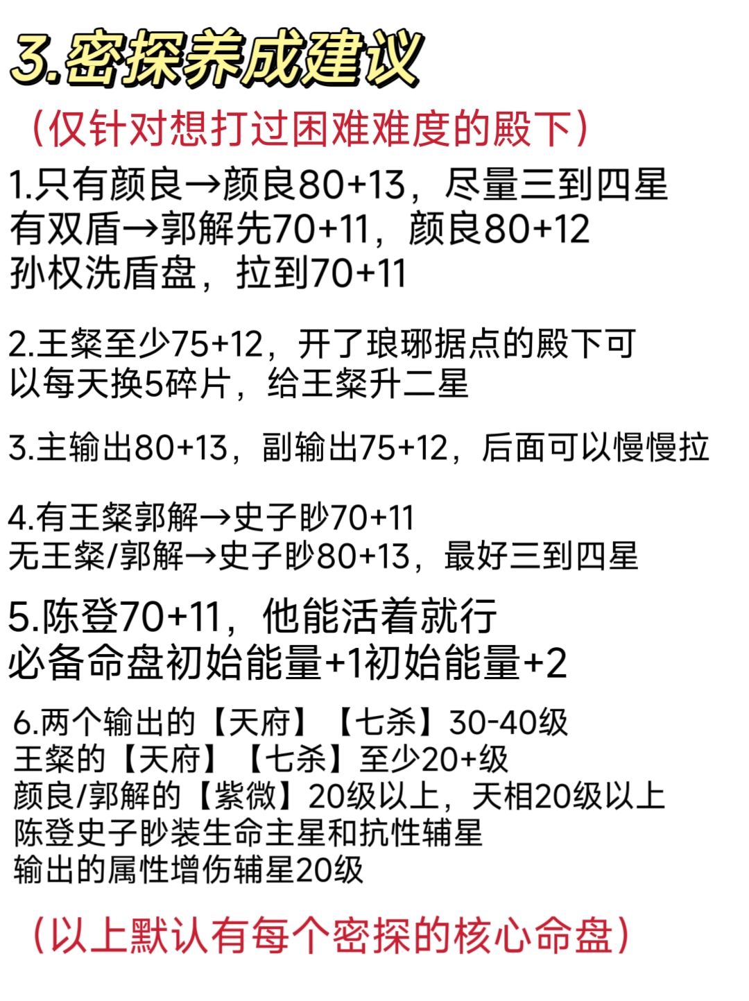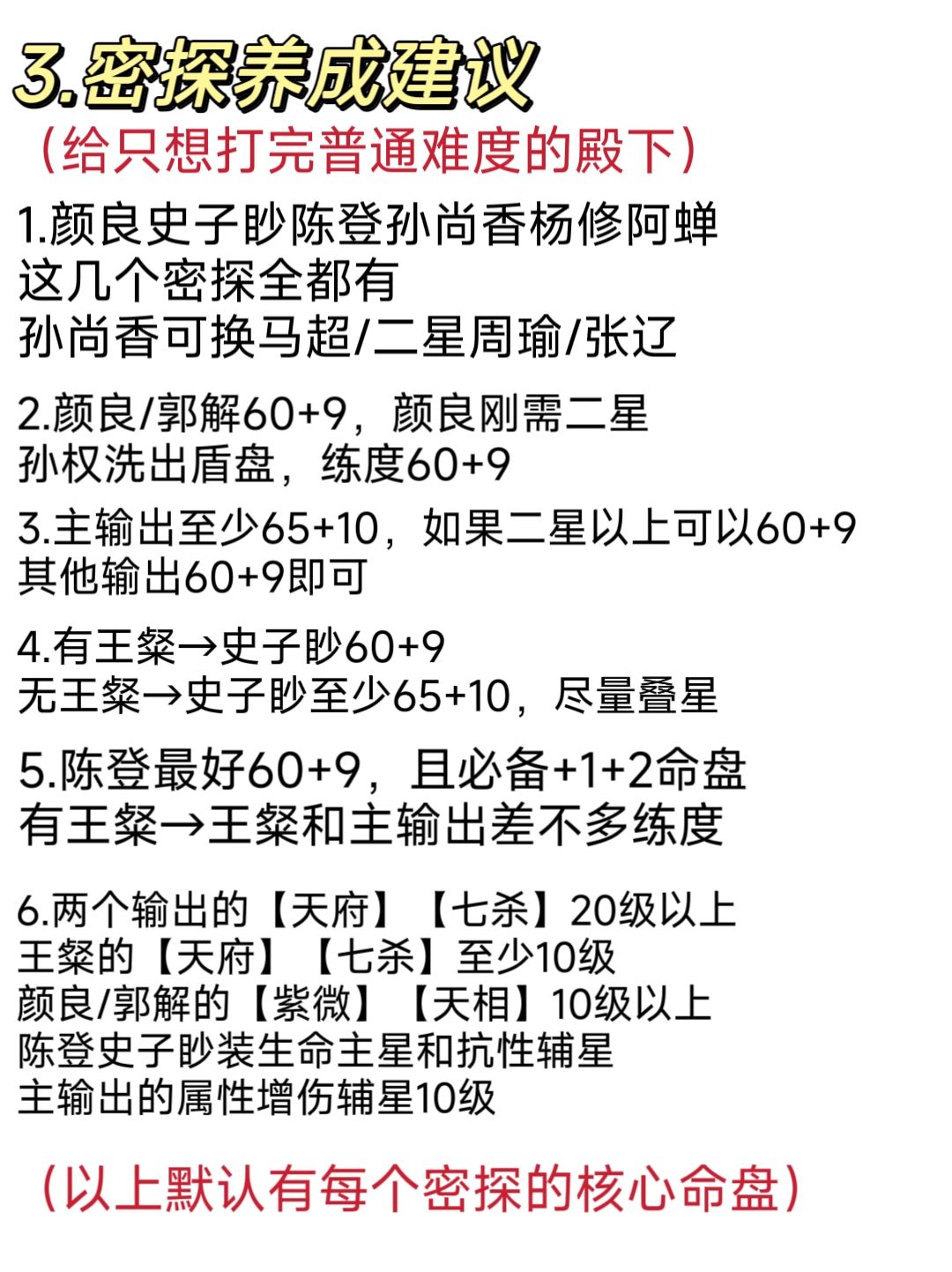 这次写了两份密探练度建议