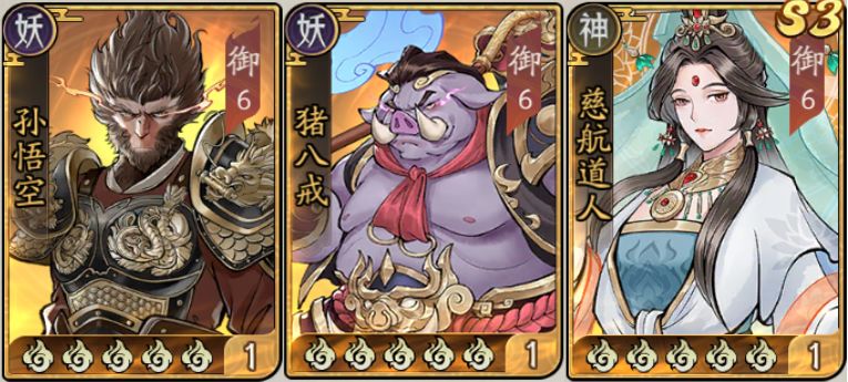 主将孙悟空,他的自带法术【定海神针】不只是高输出的群体物理法术,更是能够在对方处于畏怯或禁咒状态时额外造成物理伤害;搭配自带降低防御的物理单体法术【破甲惊风】,以及优质追击型法术【回弦追箭】更是续航输出双重提高!