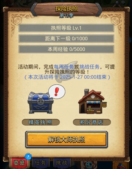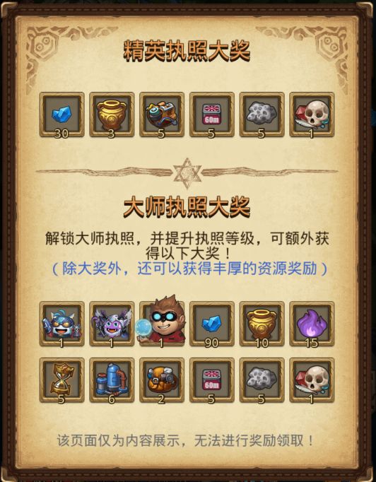执照奖励有钻石、金罐、头骨、探险积分等